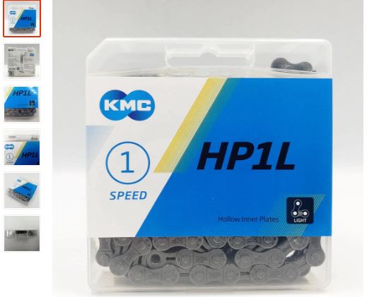 – Marca: KMC – Velocidades: 1 Velocidad – Original – Material: Acero – Eslabones: 112 L – Peso: 365gr.